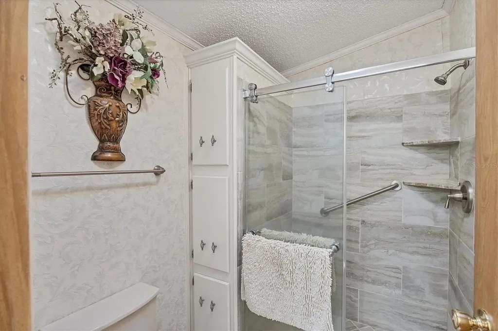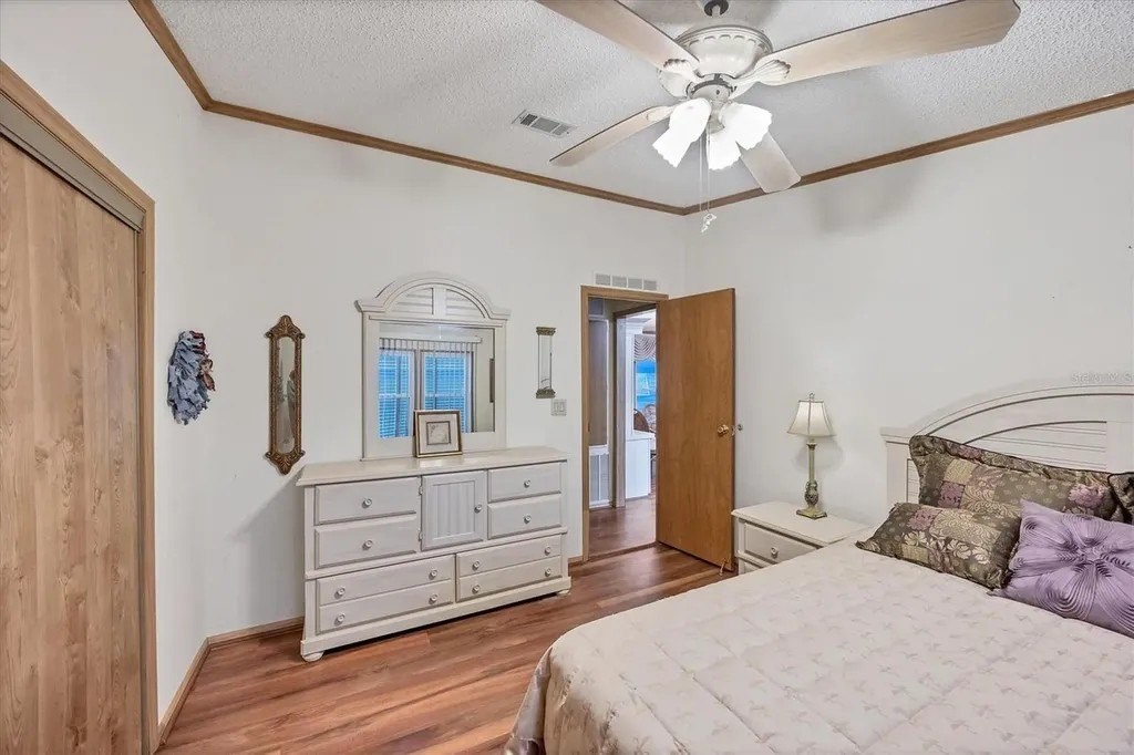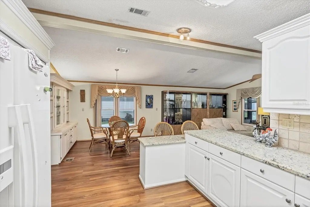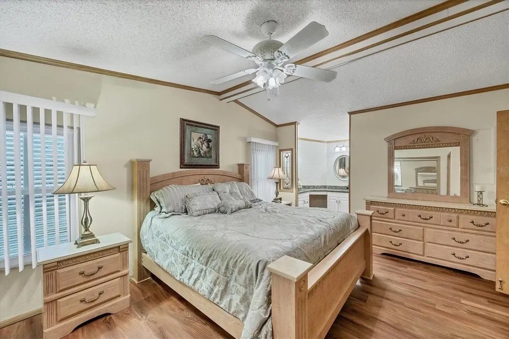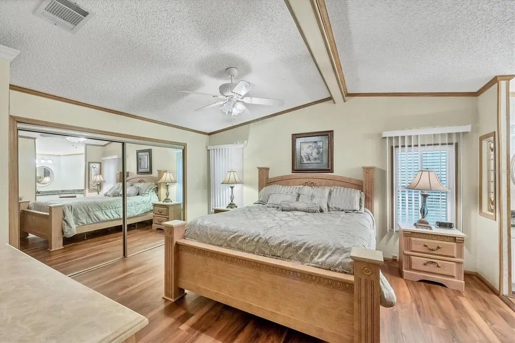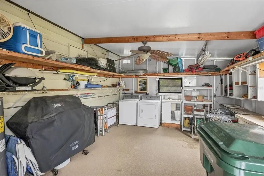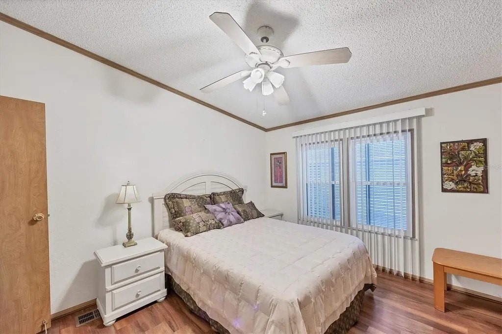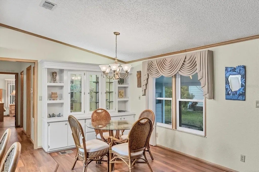 This beautifully decorated, turn-key furnished, 2-bedroom, 2-bathroom home is in Tangerine Woods. This highly sought after, over 55 community, is an active and friendly place to live! For your leisurely pleasure, this community provides you with a large heated pool and clubhouse, an exercise room and library, tennis and pickleball courts, walking trails, shuffleboard and so much more! This 2-car carport home, had a new A/C in 2025 and boasts well maintained laminate floors. A wonderfully large renovated kitchen, complete with new countertops and cupboards, which includes a breakfast bar and large pantry, is surely a chef's delight! The spacious great room is tastefully decorated and has sliders that lead to the tiled lanai, with new windows installed in 2009, is also neatly decorated, and extends your entertaining area. The master bedroom is beautifully furnished and has a nicely updated en suite bathroom, complete with dual sinks, a vanity and a step-in shower. The guest bedroom has a large closet and is also tastefully furnished. The guest bathroom has also been updated. Additionally, there is a bonus room that serves as a versatile flex space for either a home office, hobby room, library or storage, complete with counter space and cupboards. There is a large storge shed with plenty of shelves and counter space, that houses the washer and dryer. The yard is on a greenbelt that is lush and green and provides a tranquil setting. The low monthly HOA payment of $226 includes cable TV, internet and grass cutting, and Tangerine Woods is pet friendly! This community is close to Historic Dearborn St., which provides casual dining, evening entertainment, locally owned shops and a Farmers Market on Thursdays. The local beaches are just 4 miles away, as well as many local golf courses, and world class fishing! This house could be your next home-sweet-home!